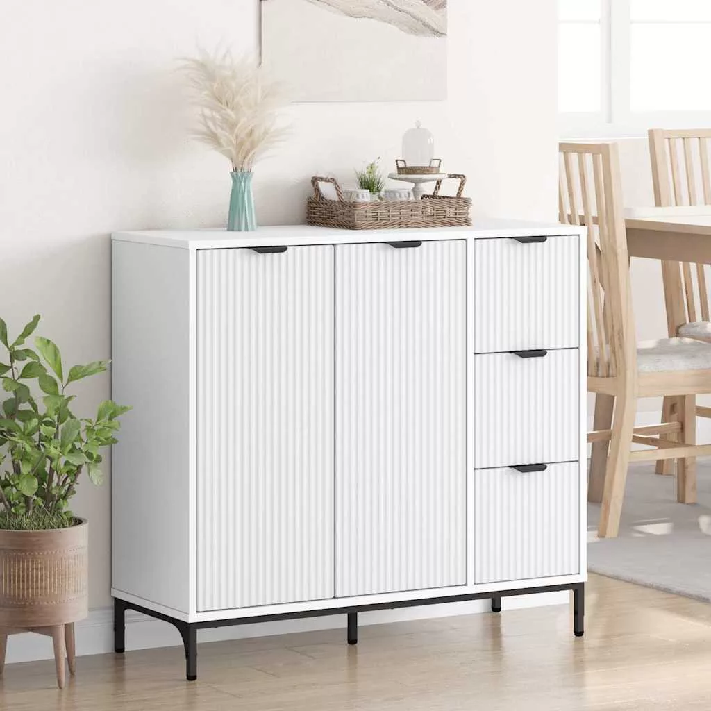 - Kényelmes tárolási megoldás: A tágas rekeszek és a sima zsanéros ajtók a tálalót kiváló tárolási lehetőséggé teszik. Könnyen rendszerezi az alap dolgokat, míg a tető további helyet biztosít dísztárgyaknak, mint könyvek vagy vázák.