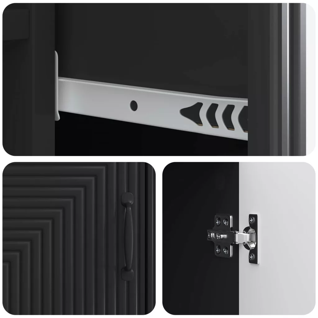 - Gondos tervezés A modern fém lábak és bárfogantyúk esztétikailag vonzóvá teszik, és könnyen illenek bármilyen otthon stílusához. A szekrény stabil, a fogantyúk pedig segítenek a könnyű hozzáférésben.