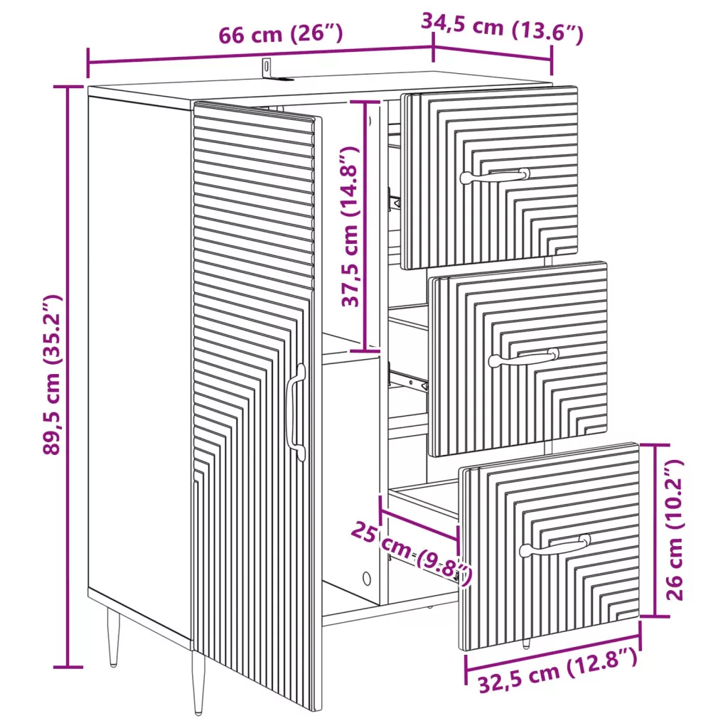 - Általános dimenziók: 66 x 34,5 x 89,5 cm (Ho x Szé x Ma)