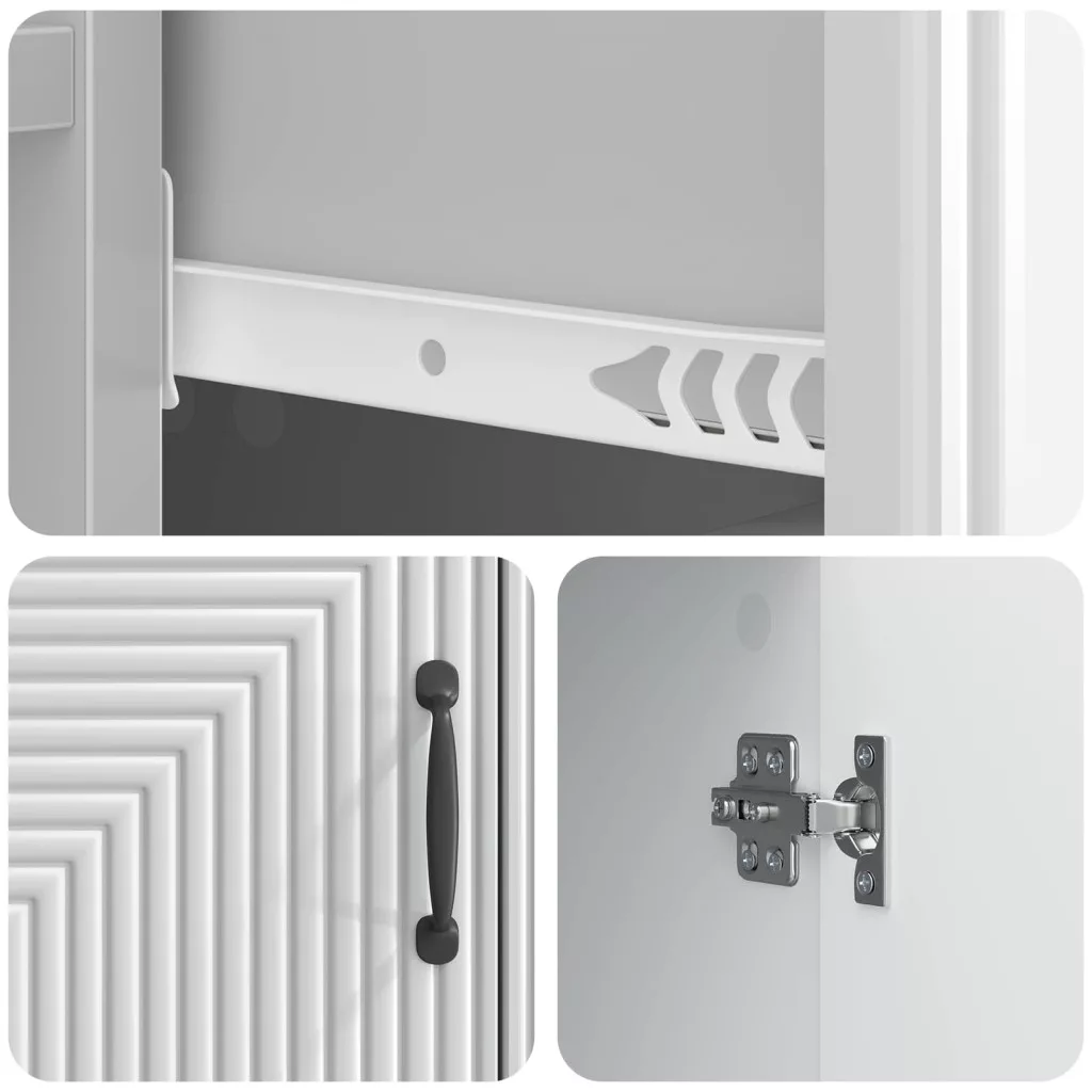 - Gondos tervezés A modern fém lábak és bárfogantyúk esztétikailag vonzóvá teszik, és könnyen illenek bármilyen otthon stílusához. A szekrény stabil, a fogantyúk pedig segítenek a könnyű hozzáférésben.
