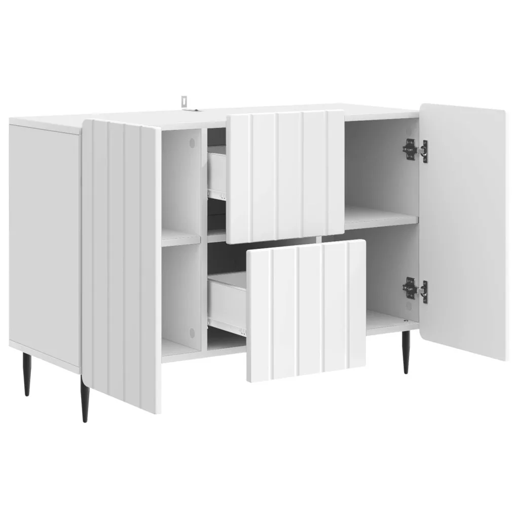 - Fekete acél lábak: A komód masszív, fekete acél lábakkal érkezik, amik stabil alapot adnak. Ezek nemcsak a súlyt tartják, hanem modern, ipari stílust is kölcsönöznek, ötvözve a formát és a funkciót. Az acél tartós, így ezek a lábak biztosítják a hosszú élettartamot.