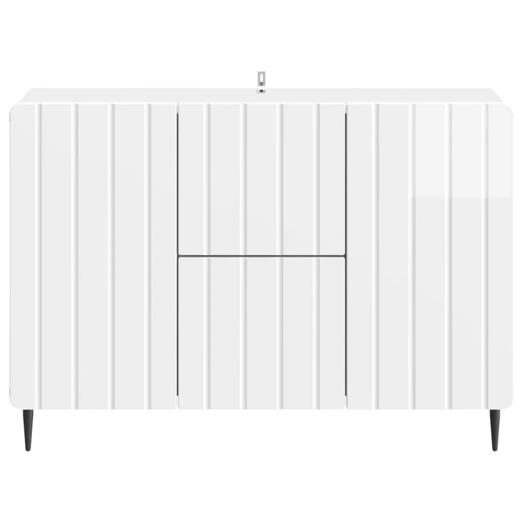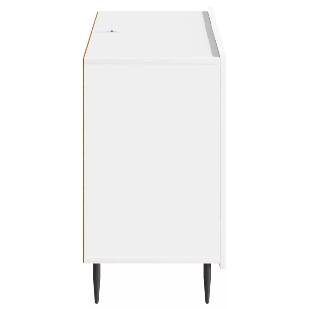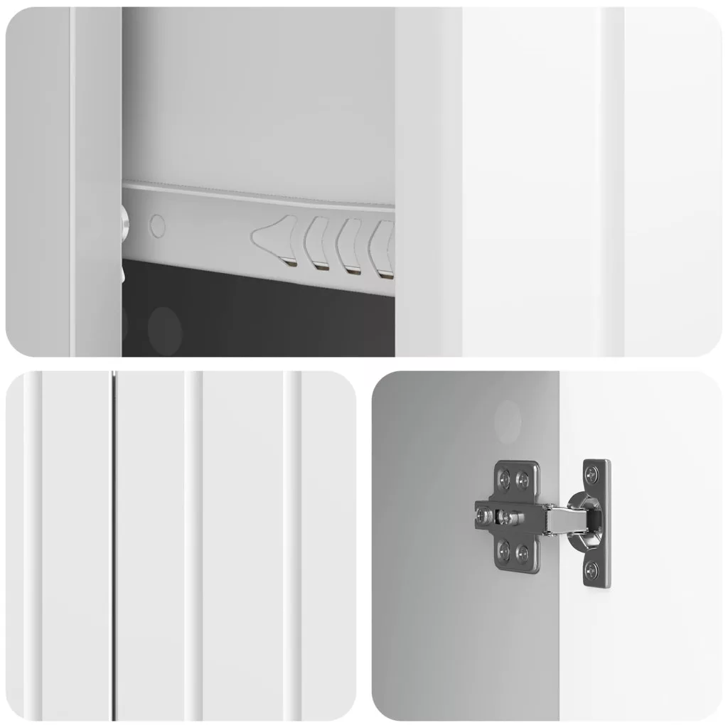 - 90°-os ajtók: A komód ajtajai 90°-os lengőpántokkal működnek, így könnyedén hozzáférhetsz a tárolórekeszekhez. Ez a dizájn tágas helyet biztosít az elemek könnyed ki- és betételére. A simább működés miatt kényelmes használni, miközben megőrzi a letisztult stílust.