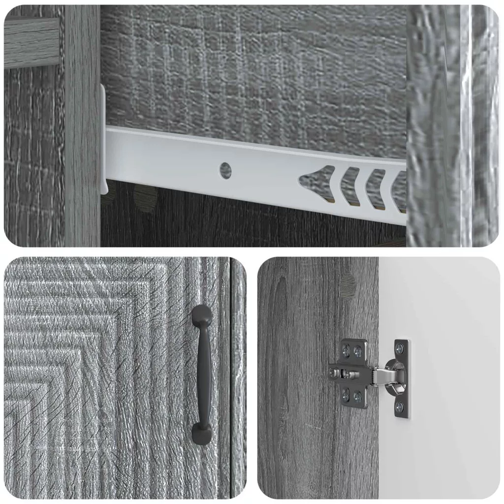 - Gondos tervezés A modern fém lábak és bárfogantyúk esztétikailag vonzóvá teszik, és könnyen illenek bármilyen otthon stílusához. A szekrény stabil, a fogantyúk pedig segítenek a könnyű hozzáférésben.
