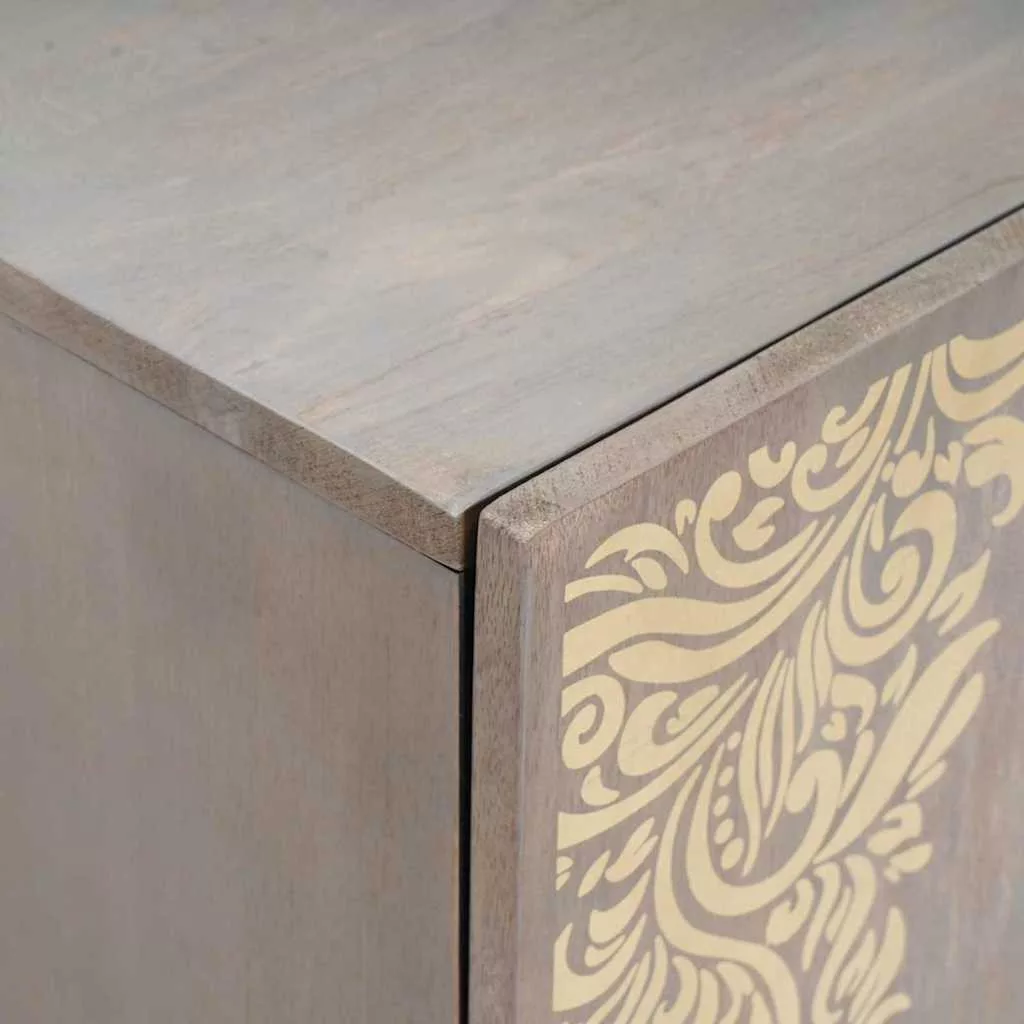 Ez az elegáns tárolószekrény unalmasnak nem mondható! Stílust és praktikusságot hoz a nappalidba vagy étkeződhöz. Modern dizájnja letisztult vonalakkal és arany kiegészítőkkel egyedi darabbá varázsolja, míg a masszív tömör mangófából készült felépítés régészeti biztosítékot ad a hosszú élettartamra. Az egyszerű, de funkcionális dizájn remek kiegészítője annak, aki keres egy letisztult bútor darabot, ami bőséges tárolót kínál.