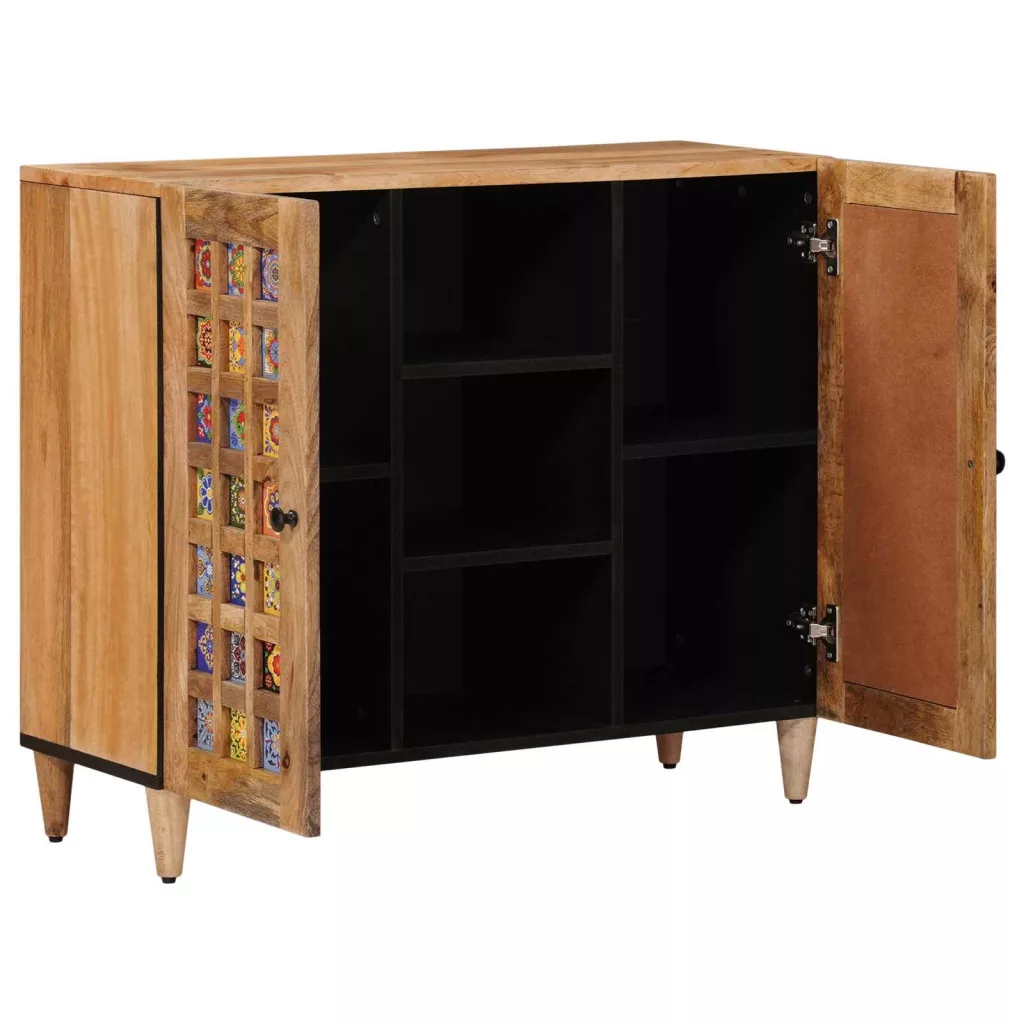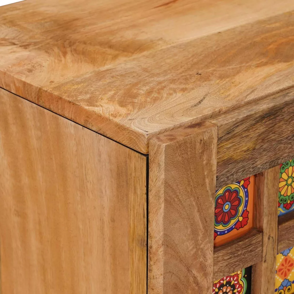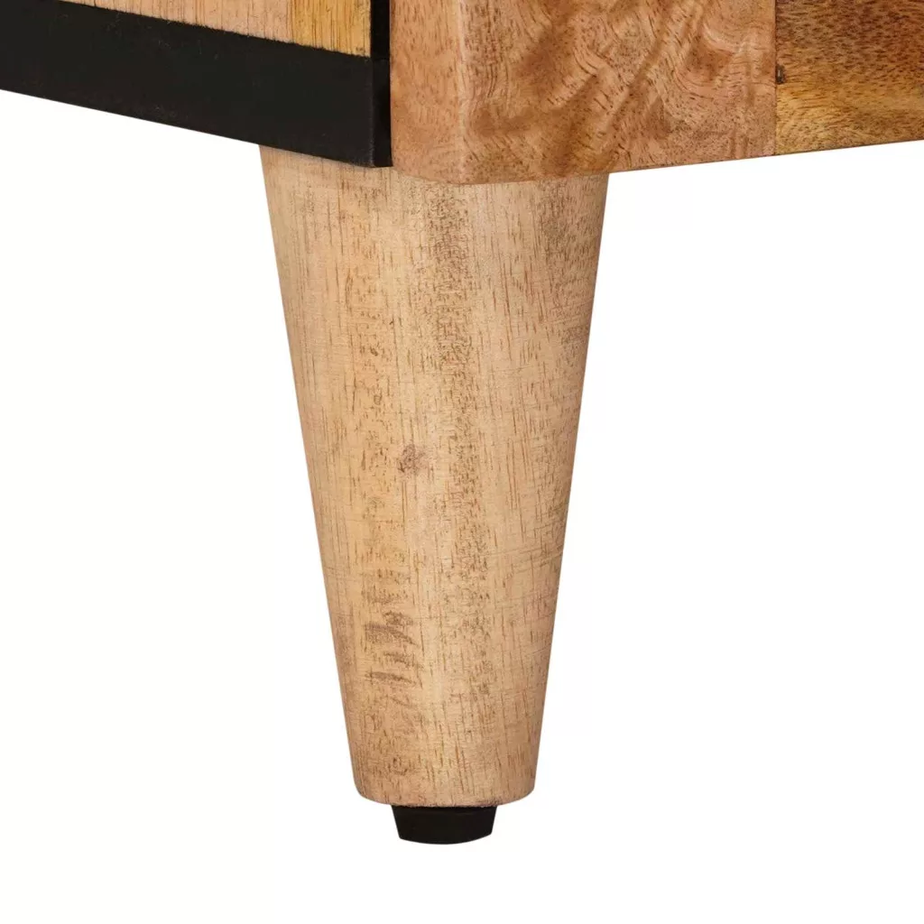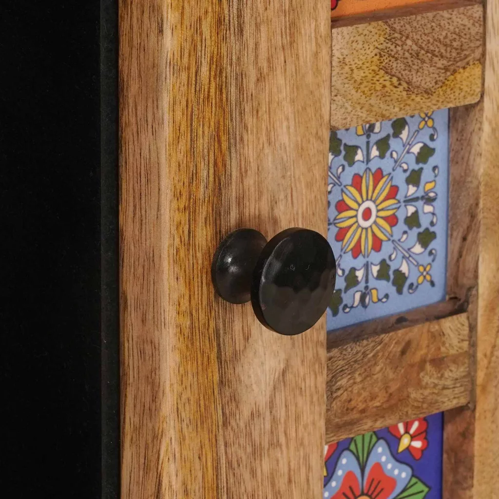 - Minőségi anyagok: Az étkezőszekrény tömör mangófából készült, ami erős és tartós. Másodlagos anyagai között szerepel a műszaki fa, ami hozzájárul a stabil, de könnyű felépítéshez. Ez a kombináció hosszú távú használatot biztosít anélkül, hogy a stílust elveszítené.