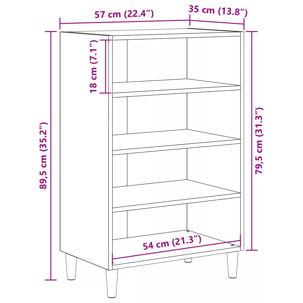 - Általános dimenziók: 57 x 35 x 89,5 cm (Ho x Szé x Ma)