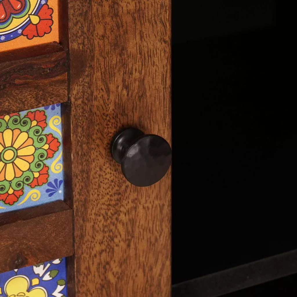 - Minőségi anyagok: Az étkezőszekrény tömör mangófából készült, ami erős és tartós. Másodlagos anyagai között szerepel a műszaki fa, ami hozzájárul a stabil, de könnyű felépítéshez. Ez a kombináció hosszú távú használatot biztosít anélkül, hogy a stílust elveszítené.