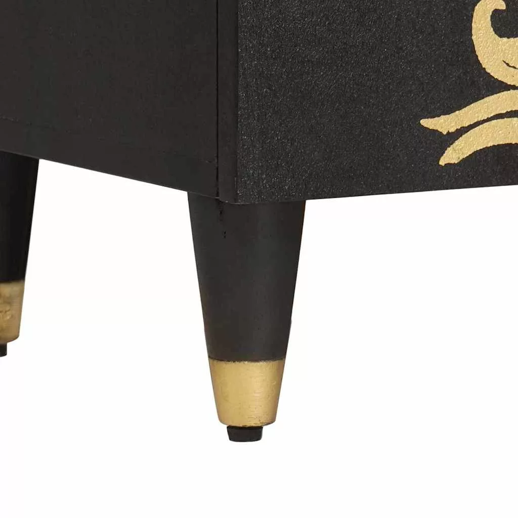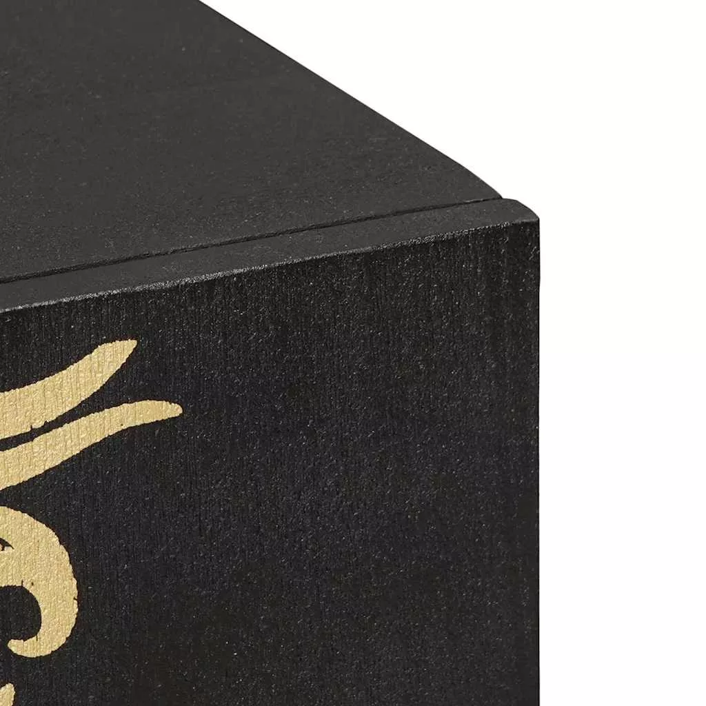 Ez a figyelemfelkeltő vitrin tökéletesen egyesíti a formát és a funkciót, modern dizájnnal, ami jól illik szinte minden belső térbe. Kiemelt alapossággal készült, letisztult téglalap formájával és sárgaréz részleteivel, amik egy luxus érintést adnak neki. Ideális a nappalikba vagy étkezőbe, a vitrin középpontként funkcionál a dekorációban, ráadásul bőven kínál tárolási lehetőséget is. A sárgaréz lábai és az egyedi arany szitanyomott mintája emelik a megjelenését, amit minden elegáns otthon irigyelne.