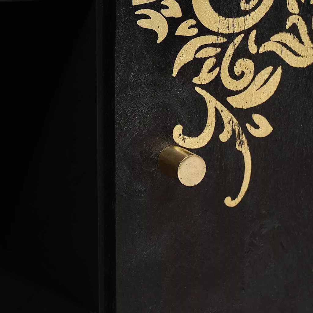 - Elegáns sárgaréz részletek Sárgaréz gombok és lábak a vitrinen egy stílusos megjelenést kölcsönöznek. Ezek a kiegészítők luxust adnak és figyelemfelkeltő elemek, ez emeli a modern dizájnt. Az ajtókon található arany szitanyomott minta elegánsan kiemeli a vitrint, tökéletesen illik az ízléses otthoni díszítést kedvelőknek. Mindezek mellett a funkcionalitását is fokozza.