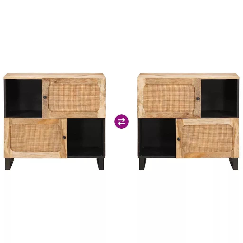 - Anyagok: Tömör mangófából készült, ez a tálalószekrény szuper tartós és robusztus tárolást biztosít. A mangófát gyönyörű textúrája és tartóssága miatt értékelik, így a szekrény hosszú évekig megőrzi eleganciáját és hasznosságát.