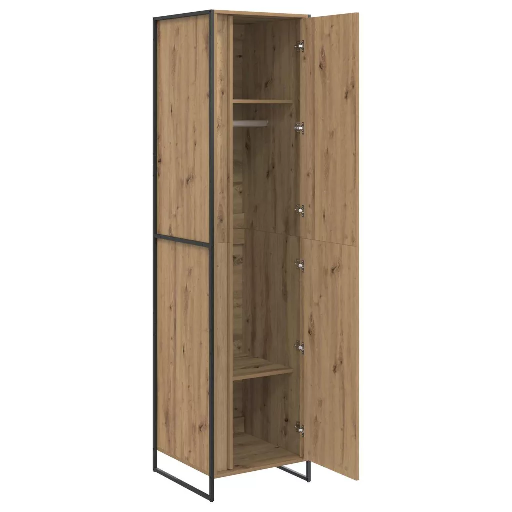 Ez az ipari gardrób igazi figyelemfelkeltő darab bármely hálószobában, modern és praktikus megoldásokkal. A tiszta, négyzet alakú kerete minimalista kinézetet ad, ami jól passzol kortárs és klasszikus dekorációkhoz is. Bőséges helyet kap a ruhák, kiegészítők és egyéb személyes tárgyak tárolására, így a hálószobád rendezett és áttekinthető lesz.