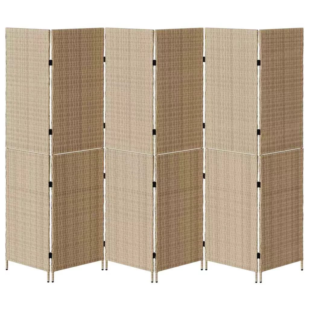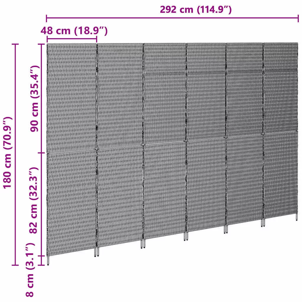 - Polirattan struktúra: Ez a szobaelválasztó tartós polirattanból készült, ami modern, szőtt hatást ad, miközben UV-ellenálló. Ezt az anyagot a minőség és a látványos megjelenés miatt választották. Éld át a természetes szövés látványát anélkül, hogy a hagyományos anyagokkal járó problémákkal kellene foglalkoznod.