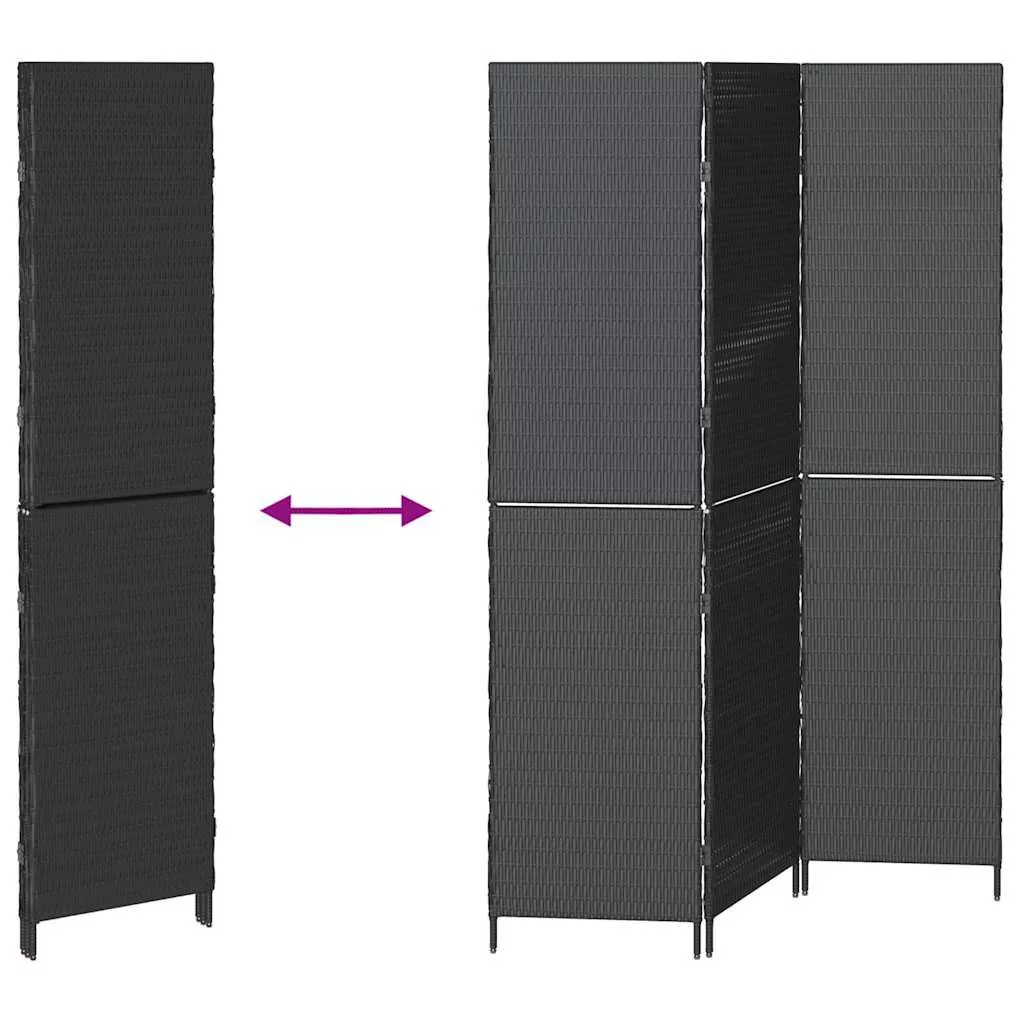 - Polirattan struktúra: Ez a szobaelválasztó tartós polirattanból készült, ami modern, szőtt hatást ad, miközben UV-ellenálló. Ezt az anyagot a minőség és a látványos megjelenés miatt választották. Éld át a természetes szövés látványát anélkül, hogy a hagyományos anyagokkal járó problémákkal kellene foglalkoznod.