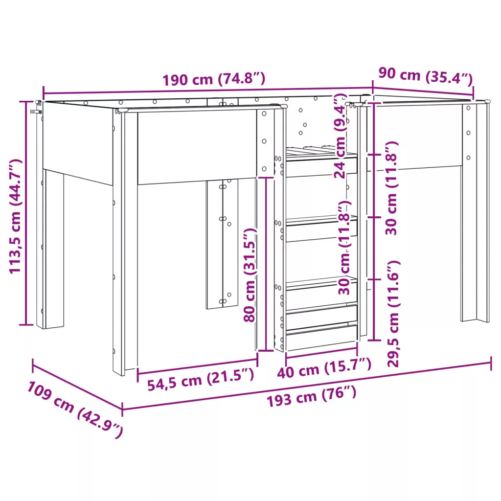 - Anyagok: Ez a méretes emeletes ágy mérnöki fából készült, ami nagy tartósságot és sima felületet biztosít. A választott anyag nemcsak strapabíró, hanem modern megjelenésével is vonzó a gyerekek és a szülők számára.