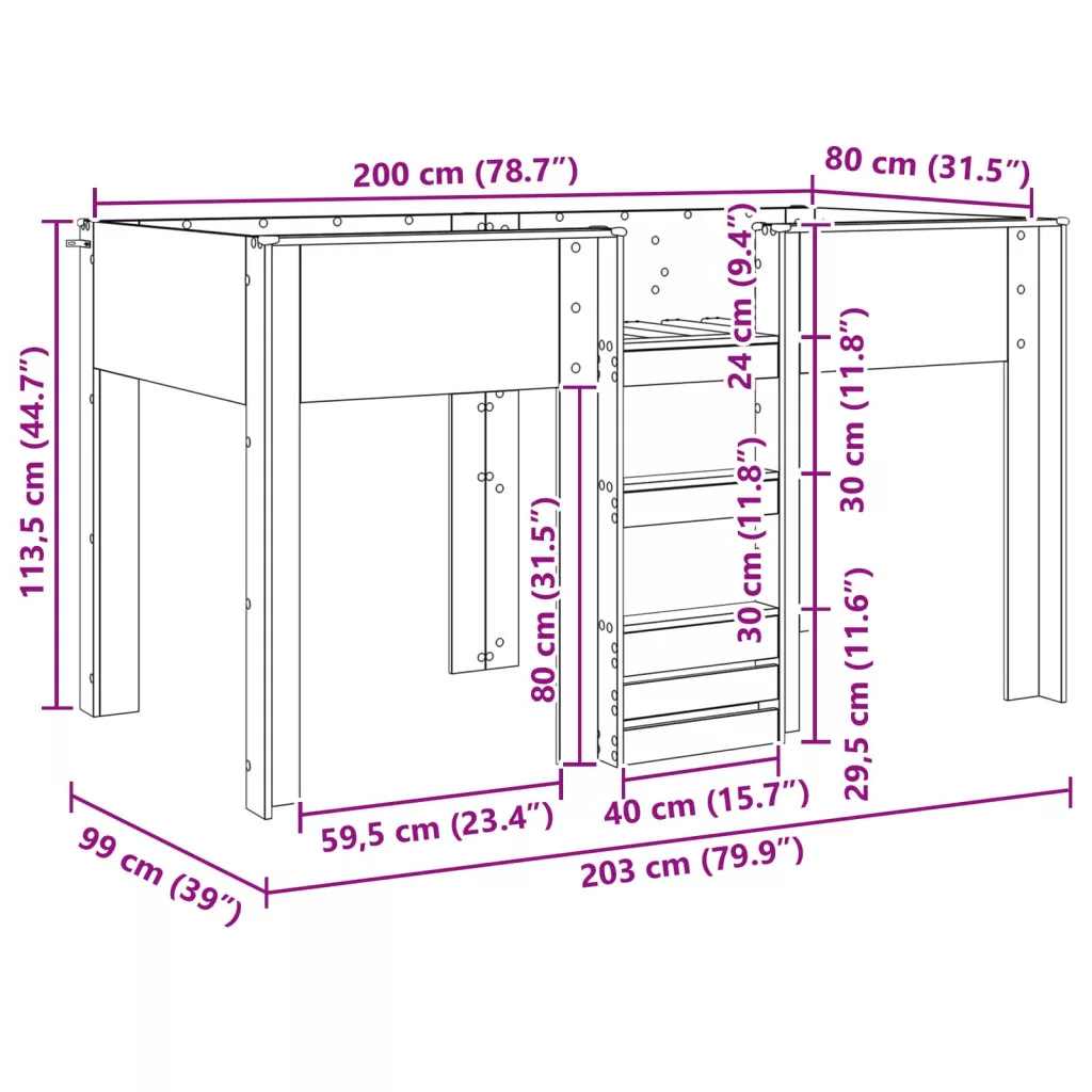 - Általános dimenziók: 203 x 99 x 113,5 cm (Ho x Szé x Ma)
