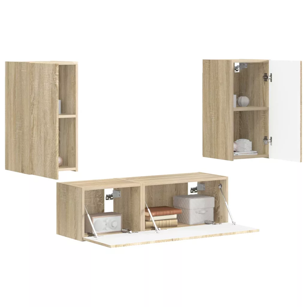 - Falra szerelt dizájn: A szekrény falra szerelt kialakítással készült, így felszabadítja a padlóteret, és nyitott, könnyed érzést teremt a nappaliban. Ez megörzi a szobád rendezettségét, miközben bőséges tárolóhelyet kínál mindenféle szórakozási alapanyagodhoz, a média lejátszóktól a videojáték konzolokig.