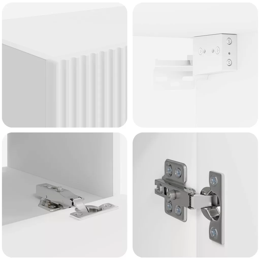 - Funkcionális 90°-os lengőpántos ajtók: Az ajtók simán nyílnak 90°-os szögben, így könnyedén hozzáférhetsz a rekeszekhez. A pántmechanizmus a szekrény sima vonalait megőrzi, optimalizálva a használhatóságot és a kinézetet. Ez a funkció ideális a rendezett megjelenéshez, hiszen egyszerű hozzáférést nyújt a tárolt dolgokhoz.