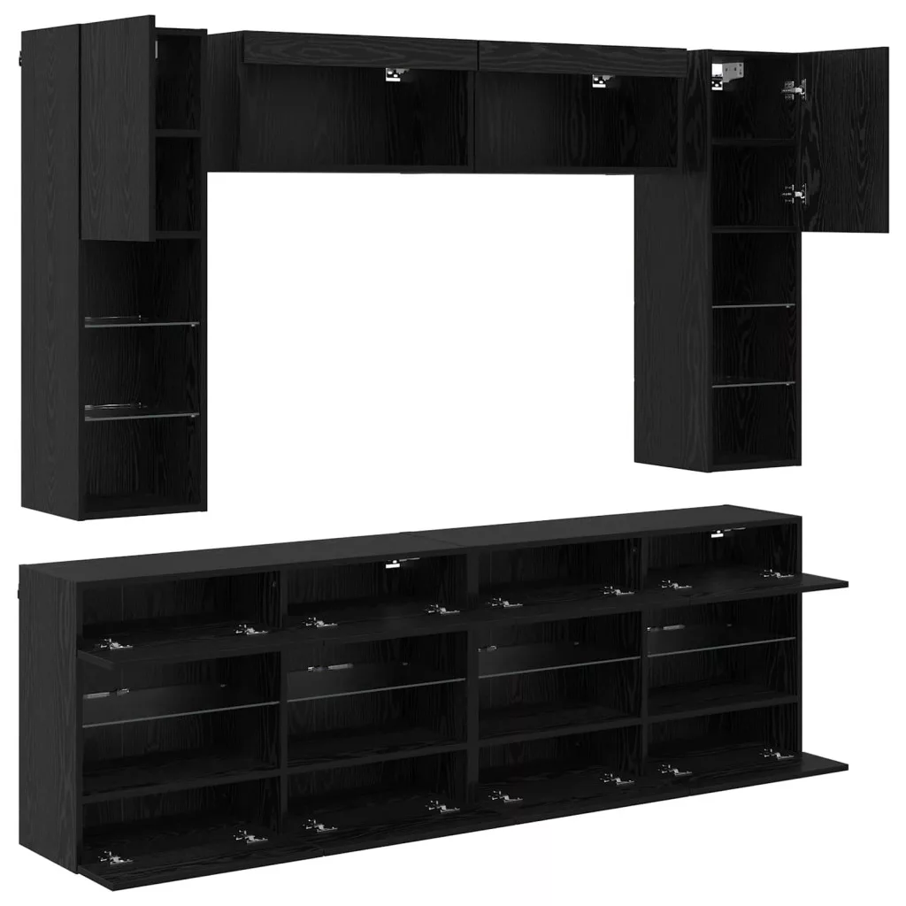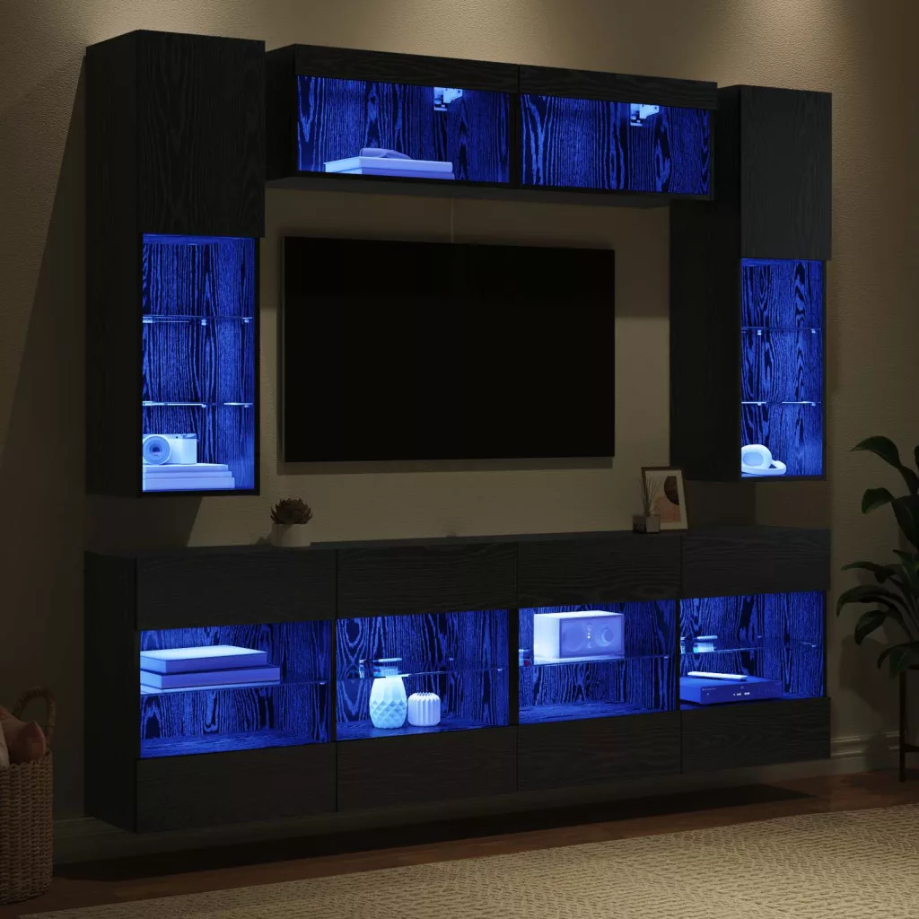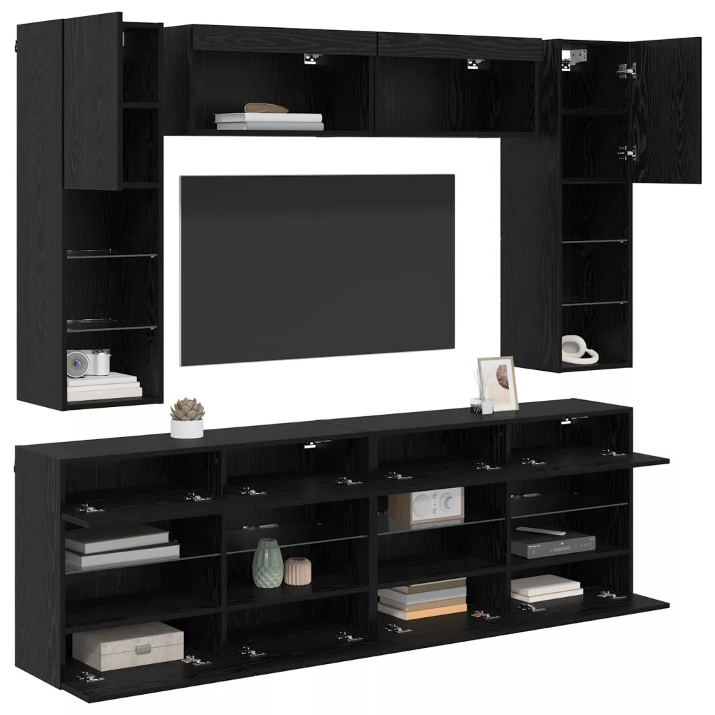 - Tartós anyagok: Ez a TV fali szekrény szett mérnöki fából készült, ami híres a tartósságáról és a kopásállóságáról. A fekete tölgy felülete eleganciát kölcsönöz, és könnyen illeszkedik különféle stílusokhoz. A mérnöki fa hosszan tart és megőrzi a megjelenését a folyamatos használat mellett.