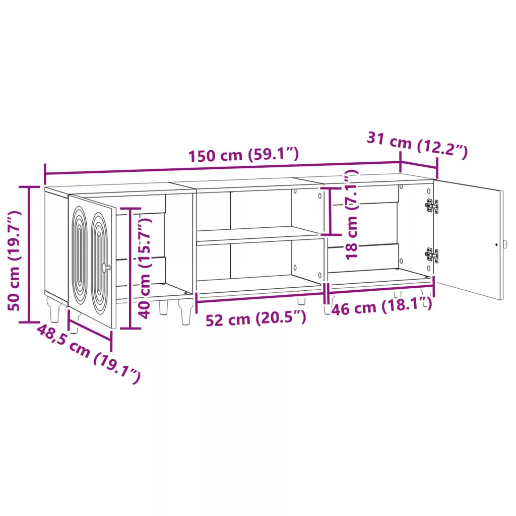 - Általános dimenziók: 150 x 31 x 50 cm (Ho x Szé x Ma)