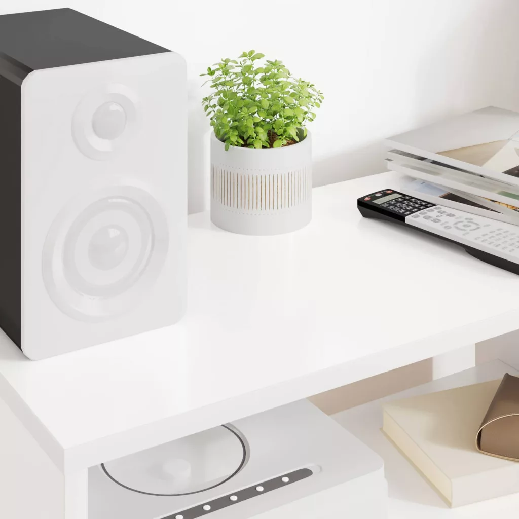 - Tartalmazott alkatrészek: Polcokkal tervezve, egyszerű megoldást biztosít a médiaeszközök és dekorációk rendszerezésére. Minden polc tartós anyagokból készült, így stabil alátámasztást ad a nehéz dolgoknak, mint például a játékkonzolok vagy zenelejátszók, megfelelve a technológiai igényeknek.
