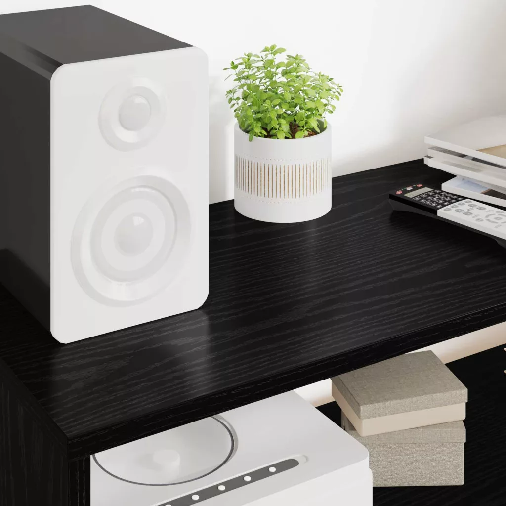 - Tartalmazott alkatrészek: Polcokkal tervezve, egyszerű megoldást biztosít a médiaeszközök és dekorációk rendszerezésére. Minden polc tartós anyagokból készült, így stabil alátámasztást ad a nehéz dolgoknak, mint például a játékkonzolok vagy zenelejátszók, megfelelve a technológiai igényeknek.