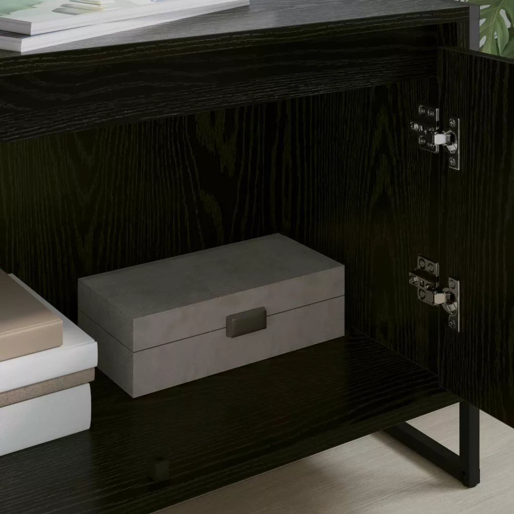Ez a TV szekrény a modern és ipari stílust képviseli, remekül beilleszkedik a nappalidba. Mérnöki fahulladékból és téglalap alakban készült, amitől vonzó és funkcionális bútor lesz, bőséges tárolási lehetőséggel a médiaeszközeidnek. Az anyagok kombinációja biztosítja a stílust és a tartósságot, ezért nagyszerű választás, ha stílusos és robusztus megoldást keresel.