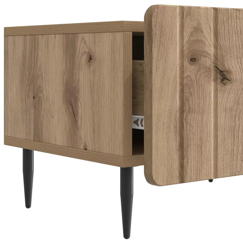 - Integrált Kihúzható Fiókok: A simán futó fiókok könnyű hozzáférést adnak a dolgaidhoz. A dizájn a kényelmet helyezi előtérbe, így a DVD-k és távirányítók diszkréten tárolhatók, miközben mégis könnyen hozzáférhetsz hozzájuk.