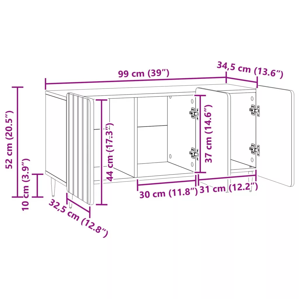 - Általános dimenziók: 99 x 34,5 x 52 cm (Ho x Szé x Ma)