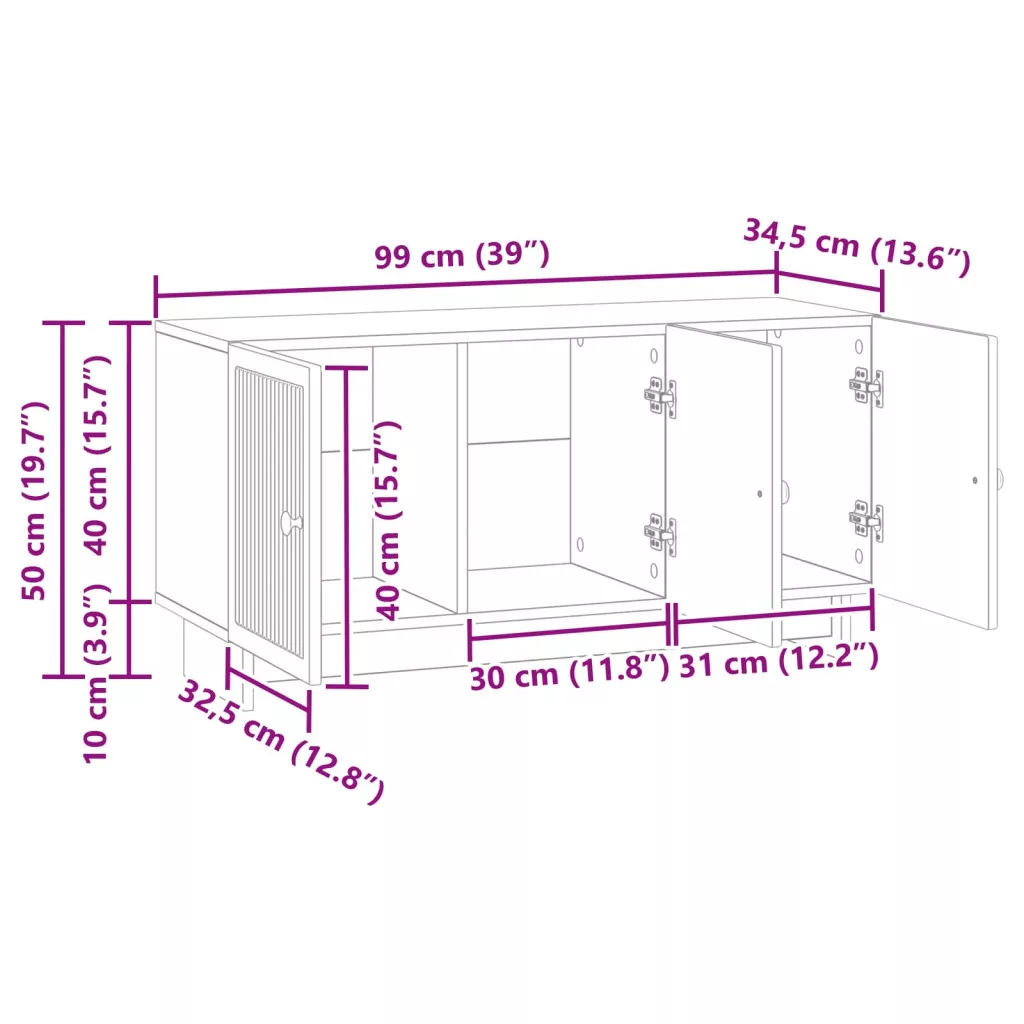 - Általános dimenziók: 99 x 34,5 x 50 cm (Ho x Szé x Ma)