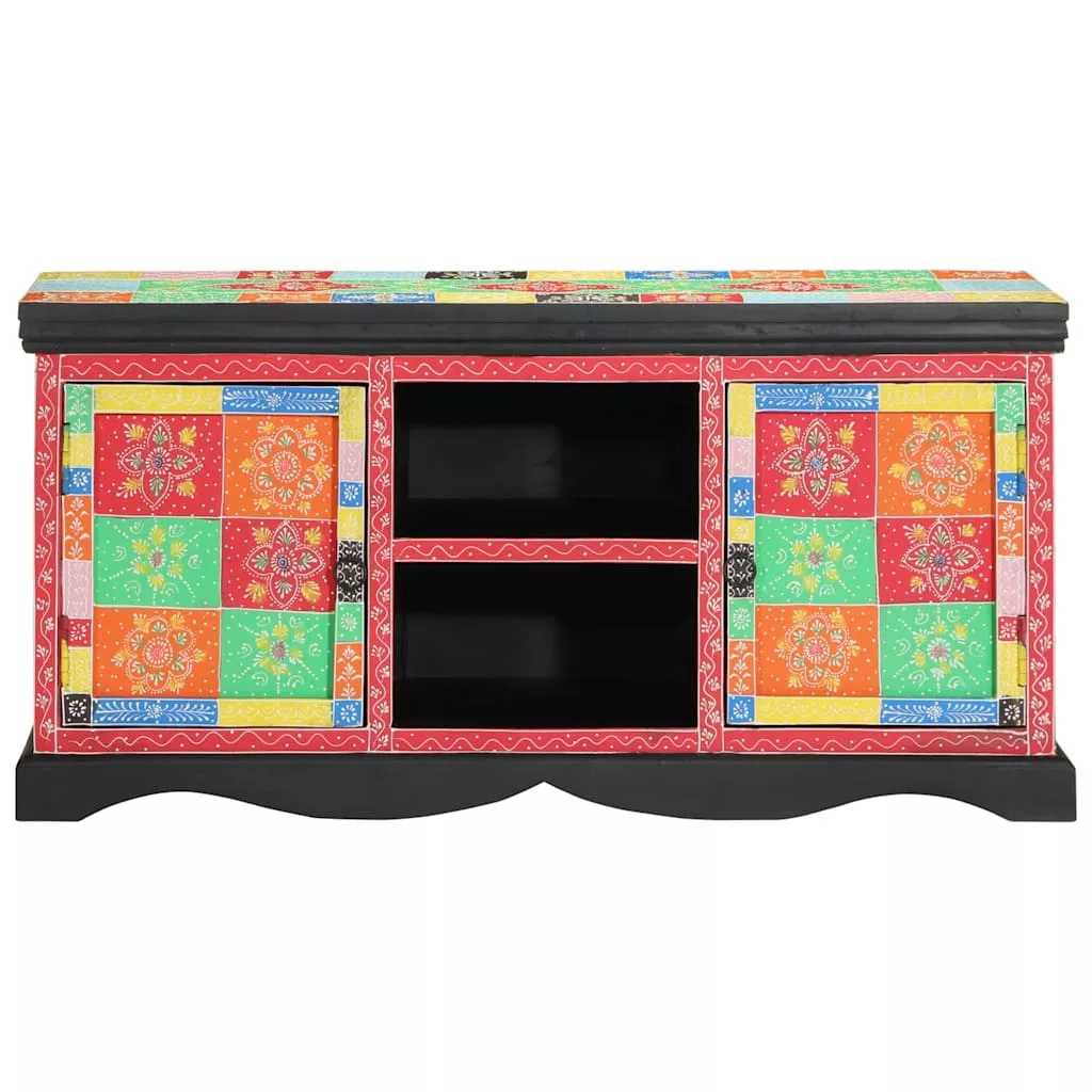 - Anyag: Ez a TV szekrény tömör mangóból készült, ami tartós és szép textúrájú. Ez az anyag biztosítja, hogy a darab hosszú ideig megállja a helyét bármilyen beltérben.