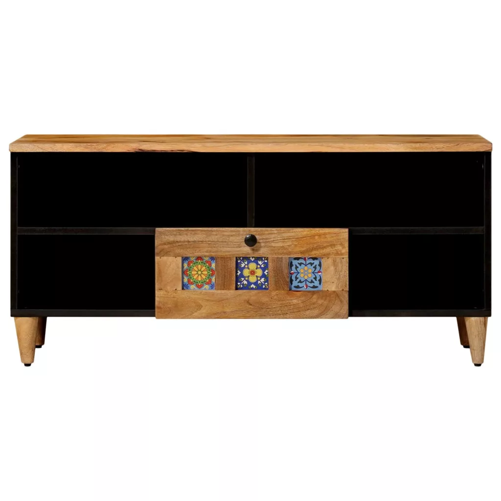 - Tömör mangófából készült keret: A TV szekrény kerete tömör mangófából készült, ami híres robusztusságáról és természetes szépségéről, organikus hatást adva a térnek. A matériaválasztás garantálja a hosszú élettartamot és a stabilitást, ellenáll a napi használatnak egy pörgős nappaliban.