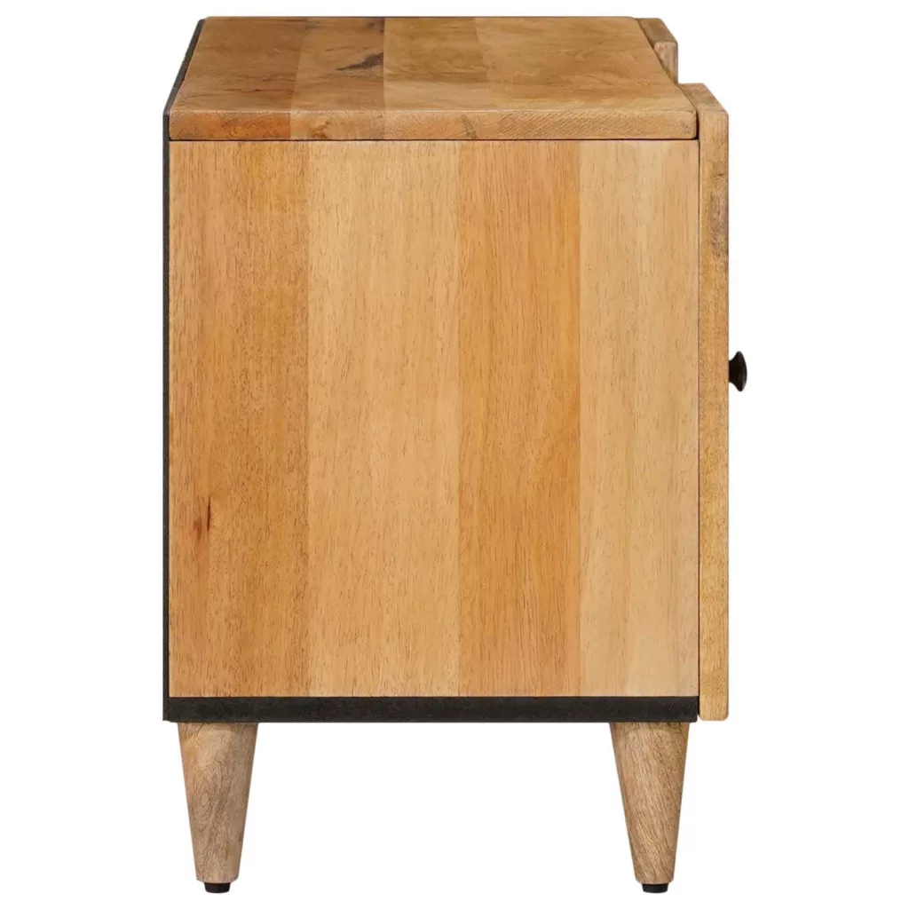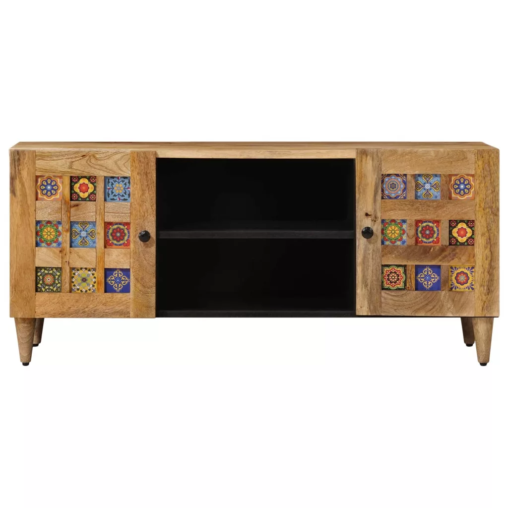 - Tartós konstrukció: Tömör mangófából és fém elemekből készült, a szekrény megbízható és hosszú távú használatot ígér. Masszív felépítése ideális a médiafelszerelés és kiegészítők tárolására.