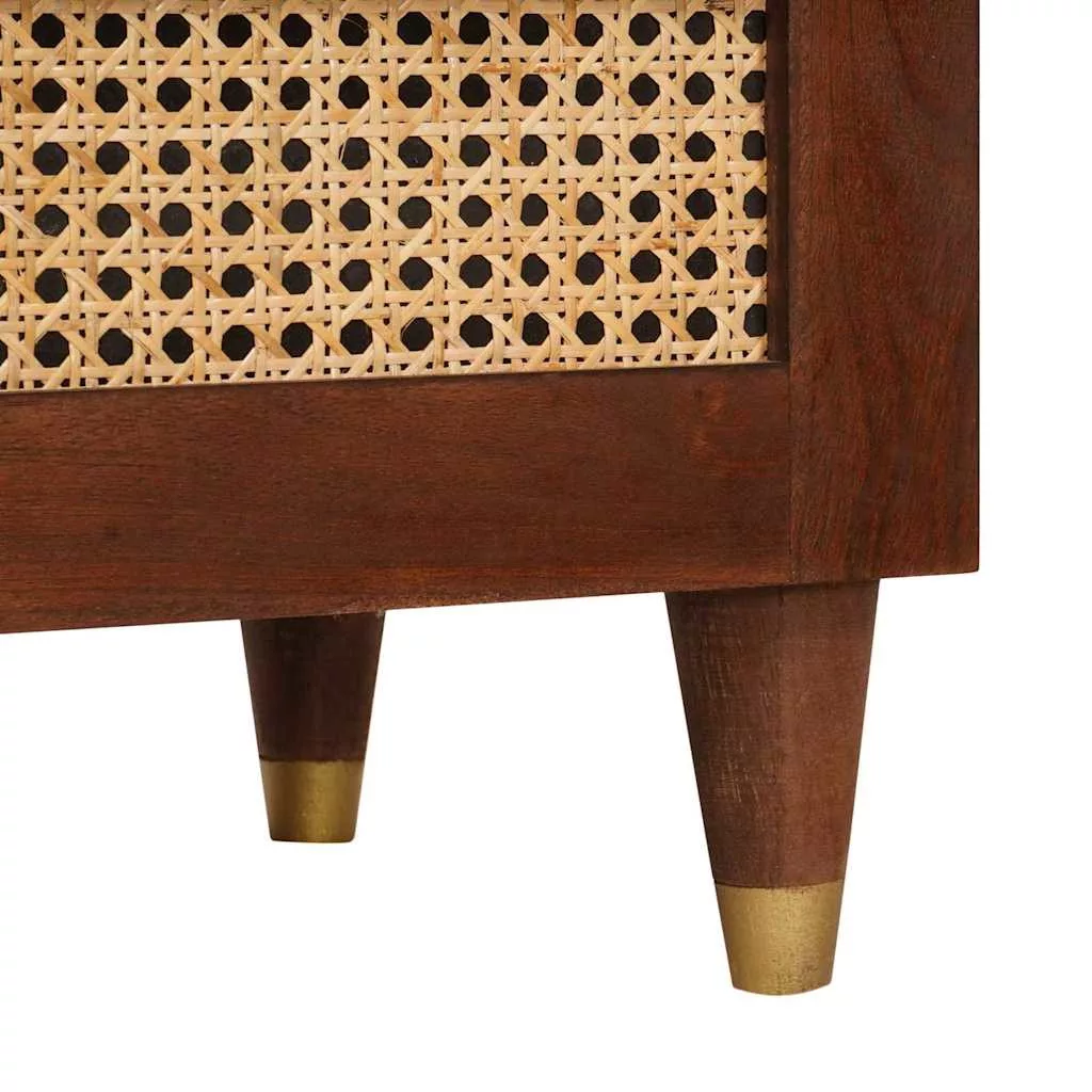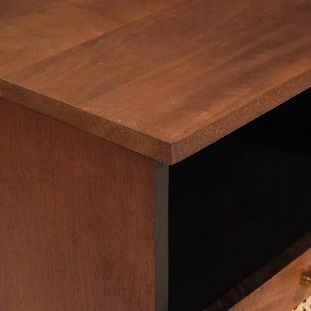 - Tömör mangófából készült szerkezet: Ez a TV állvány tömör mangófából készült, ami híres a tartósságáról és szilárdságáról. A gazdag barna szín meleg és hívogató légkört teremt, így egy szuper funkcionális bútor lesz az otthonodban. Az anyag biztosítja, hogy az állvány elviselje a mindennapos használatot, és esztétikáját megőrizze az idők során.