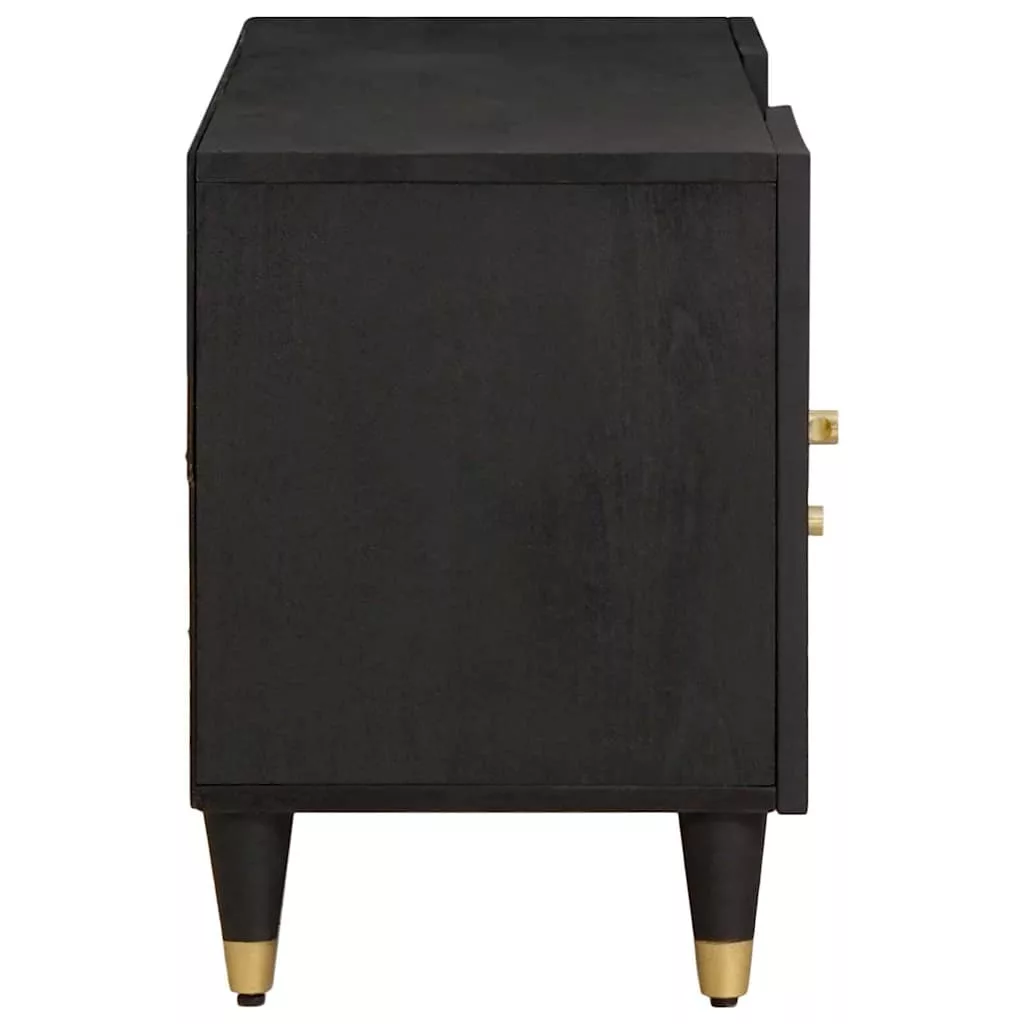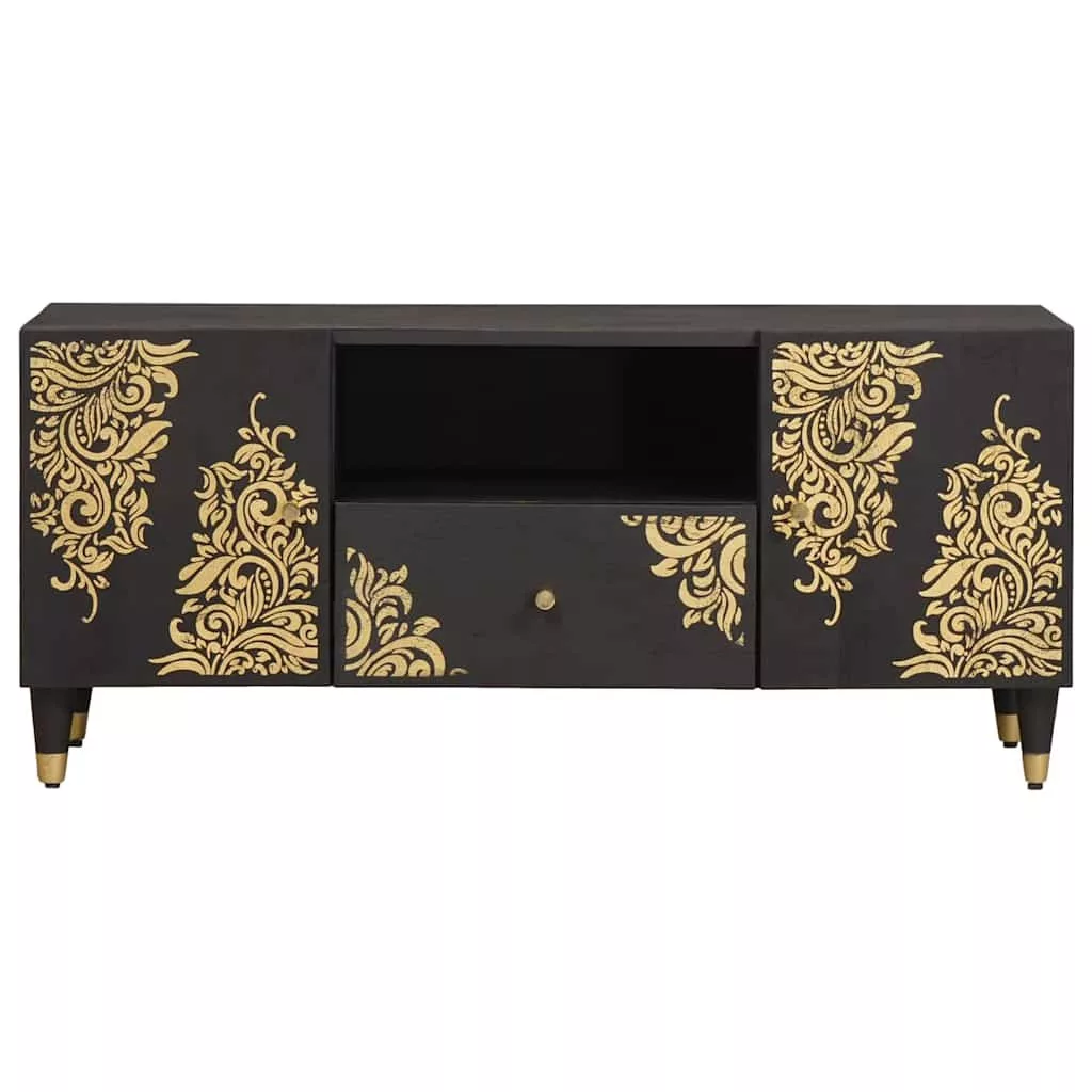 Ez a TV szekrény a funkciót és a formát ötvözi, elegáns arany mintázattal és tömör mangófából készült felépítéssel. Tökéletes a modern lakásokhoz, minimalista stílusban készült, letisztult vonalakkal, amik extra stílust adnak a nappalidnak. Ez nem csak egy bútor, hanem egy praktikus tárolói megoldás, ami a modern otthonok igényeihez lett tervezve. Sokoldalú tárolóegység, ami jól illeszkedik a különféle dekorációs stílusokhoz, elegáns helyet biztosít a médiaeszközeid és kiegészítőidnek.