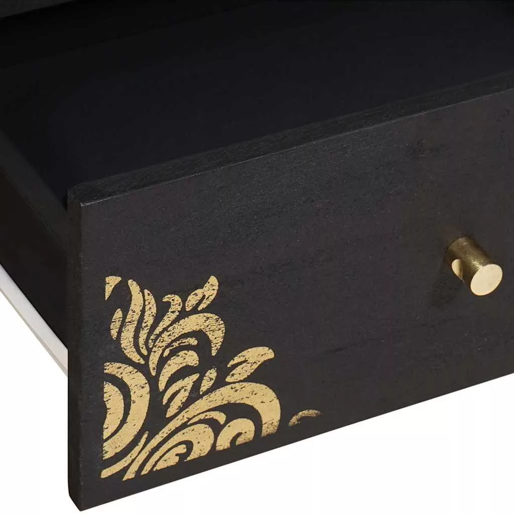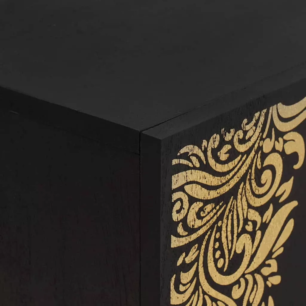 - Jellemzők / Funkció / Dizájn: Egy egyszerű, de vonzó modern stílusra tervezték, az arany mintázatok pedig egy kis luxust adnak hozzá. A sárgaréz gombok szépen kiegészítik a szekrényt, míg a zsanéros ajtók megkönnyítik a hozzáférést.
