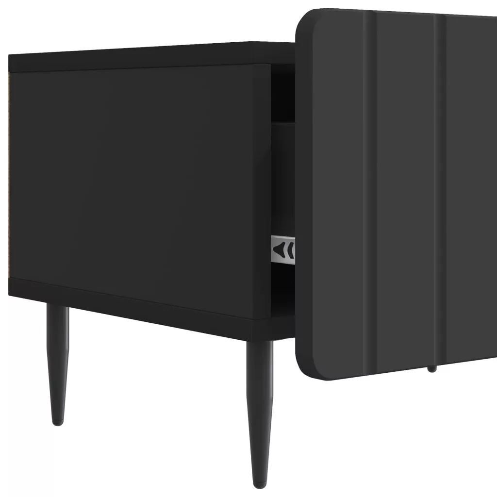 - Integrált Kihúzható Fiókok: A simán futó fiókok könnyű hozzáférést adnak a dolgaidhoz. A dizájn a kényelmet helyezi előtérbe, így a DVD-k és távirányítók diszkréten tárolhatók, miközben mégis könnyen hozzáférhetsz hozzájuk.