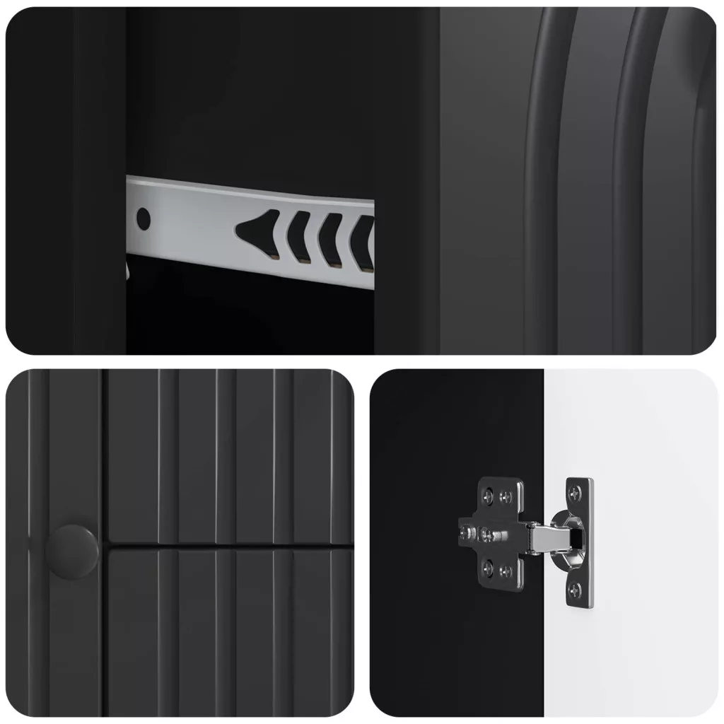 - Funkcionális 90°-os ajtók Ezek az ajtók könnyű hozzáférést biztosítanak a tárolt tárgyakhoz, miközben zárva is szépen mutat. A pántmechanizmus simán működik, ami csak hozzáad a szekrény modern kinézetéhez.