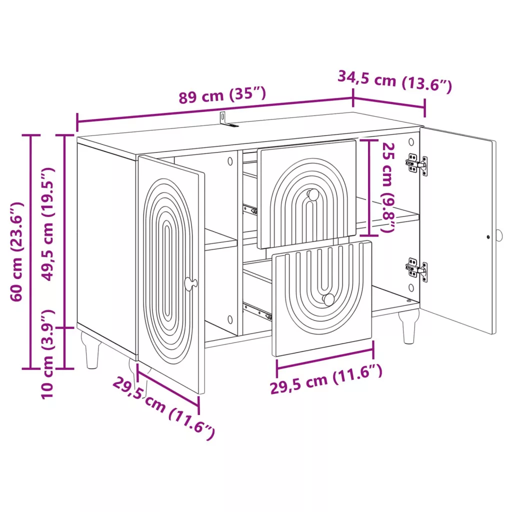 - Általános dimenziók: 89 x 34,5 x 60 cm (Ho x Szé x Ma)