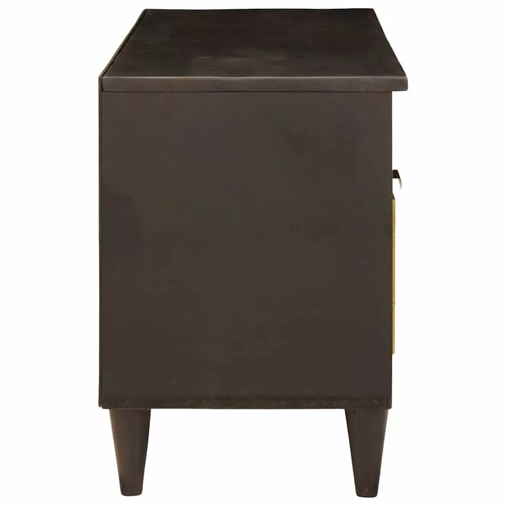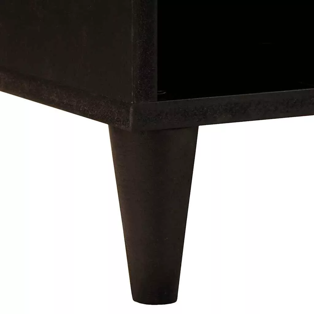 - Stílusos fiókok: Az arany fiókok jól néznek ki a fekete kerettel, és extra rejtett tárolást nyújtanak. A letisztult fogantyúk könnyű hozzáférést biztosítanak a média kiegészítőkhöz és távirányítókhoz, így a szoba vizuális harmóniája megmarad.
