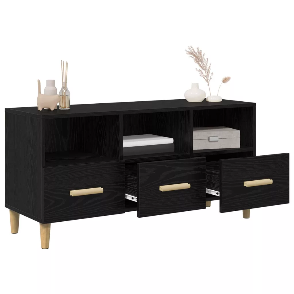 - Mérnöki fa kivitel: Ez a TV szekrény mérnöki fából készült, így tutira tartós, és modern kinézetét is megőrzi. Az erős anyag jól támaszt, és jól illik a dizájnhoz.
