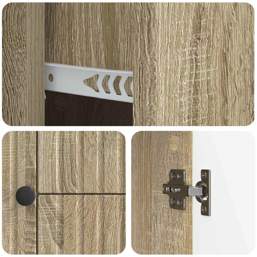 - Funkcionális 90°-os ajtók Ezek az ajtók könnyű hozzáférést biztosítanak a tárolt tárgyakhoz, miközben zárva is szépen mutat. A pántmechanizmus simán működik, ami csak hozzáad a szekrény modern kinézetéhez.