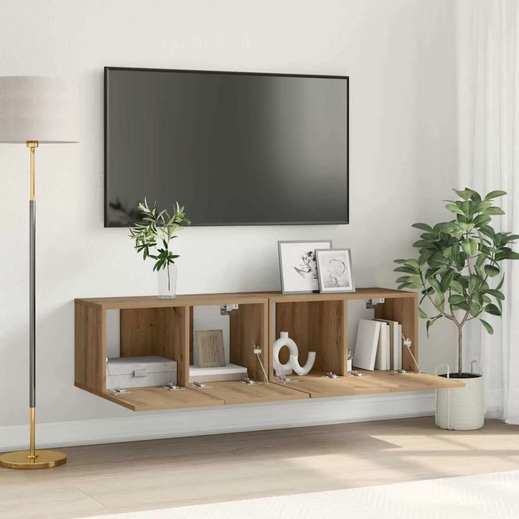 Ez a falra szerelhető TV szekrény szett a funkció és a modern stílus tökéletes kombinációja. Nappaliba készült, helytakarékos megoldást kínál, hogy szépen mutasson a szórakoztató rendszered. Minimalista stílusával és táblaalakjával elegáns kiegészítője bármilyen dekorációnak. A szekrény magasan van, nyitott érzést teremt, miközben rendszerezi a fontos dolgokat.
