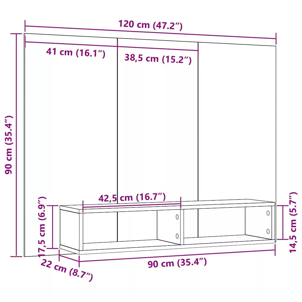 - Polcok: A táblás polcai tökéletes helyet adnak médiák vagy dekorációk elhelyezésére, míg a fa hátlap stabil rögzítést biztosít a tér rendezettsége érdekében.