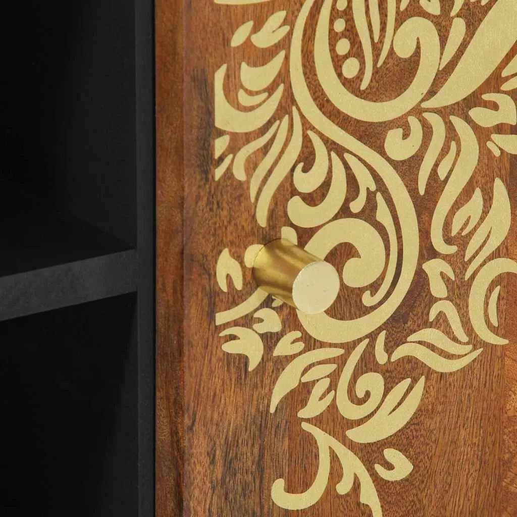 Ez a tárolós tévészekrény a funkcionalitás és a jó dizájn tökéletes ötvözete, ami a modern lakóterekhez készült. A tömör mangófa és a sárgaréz elemek jól kiegészítik egymást, így a szekrény stílusosan és praktikusan emeli ki a médiakészülékeidet. Finom téglalap formája és gazdag arany tónusai egy kis luxust csempésznek a térbe anélkül, hogy túlzsúfolttá tennék azt. Tökéletes azoknak, akik értékelik a dizájnt és a funkcionalitást: ez a bútordarab modern varázst csempész a történelem lévő szórakoztató terekbe, miközben bőséges tárolást biztosít a különböző kütyük és távirányítók számára.