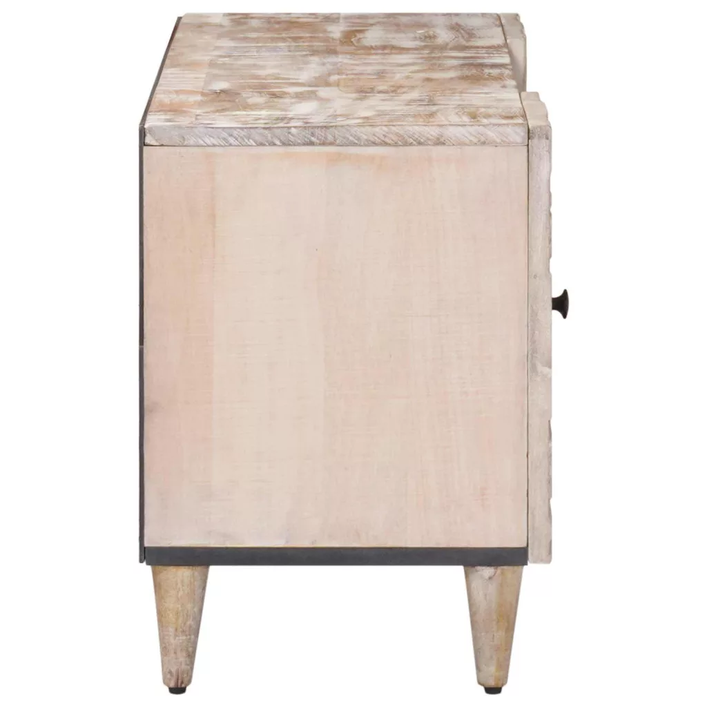 Ez a tömör mangófa TV szekrény úgy van tervezve, hogy a funkcionalitást és a stílust ötvözze, így igazi alapdarabja lesz bármely nappalinak. Az áramvonalas, téglalap alakú dizájnja jól passzol a modern és klasszikus környezetekhez, szép és hasznos megoldásokat kínálva. Sima felülete ideális a TV-nek, mentre intuitív dizájnjánál fogva könnyen rendben tarthatod a média berendezéseket és kiegészítőket.