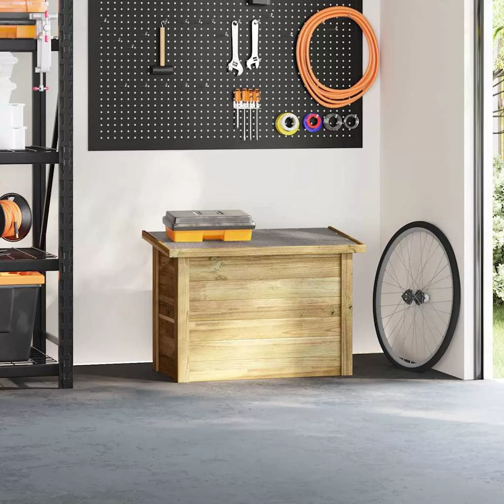 Ez a modern tároló láda nemcsak szép, de nagyon praktikus is! Beltérre és kültérre egyaránt remek, erős és mutatós megoldás minden tárolási igényhez. Kortárs designjának letisztult, minimalistának mondható vonalai miatt bármilyen stílushoz jól passzol. A téglalap alakú láda impregnált fenyőfából készült, ami tartósságáról híres. Tökéletes választás teraszokon, vagy akár a nappaliban, ha takarókat, szerszámokat vagy más napi szükséges dolgokat akarsz tárolni.