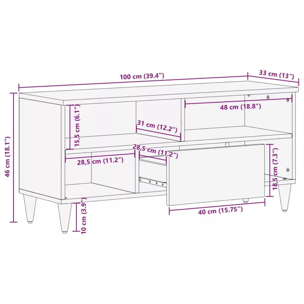 - Általános dimenziók: 100 x 33,5 x 46 cm (Ho x Szé x Ma)