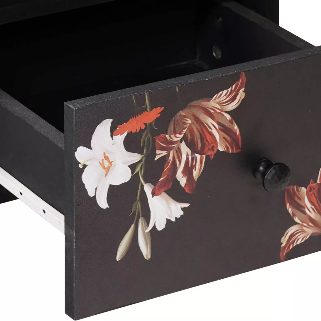 - Uniquely designed components: Gondosan kidolgozott virágmintás részletekkel és réz gombokkal, ez a szekrény igazi dizájnelem lesz. A díszítő elemek bájos középponttá varázsolják a nappalidat, ötvözve a hagyományos szépséget a modern befejezéssel, ezzel egy kis különlegességet csempészve a média tárolásába.