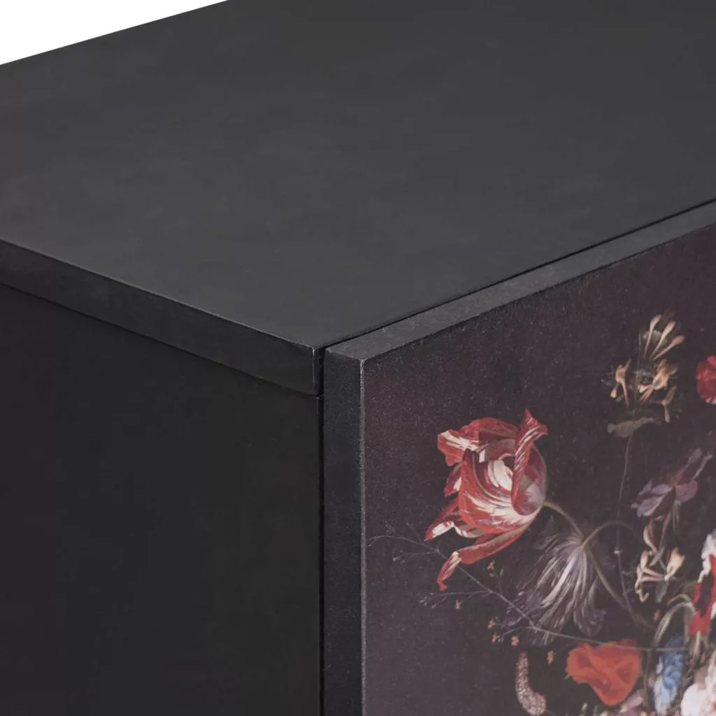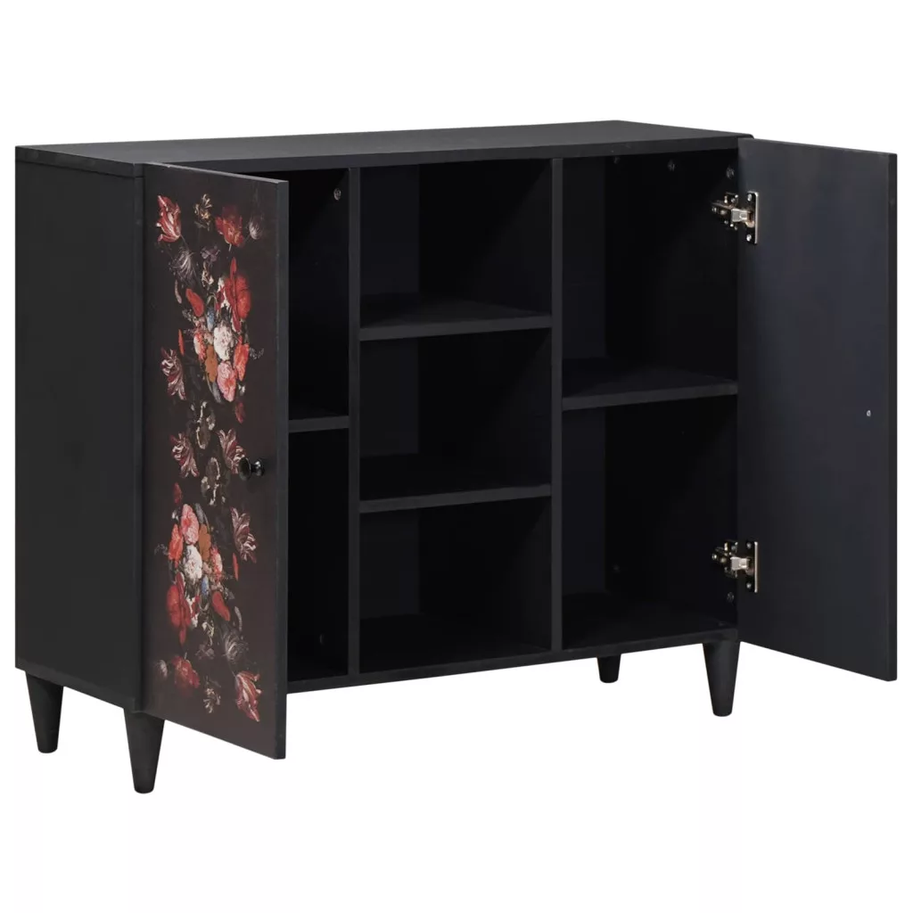 Ez a modern tároló szekrény szuper elegáns megoldás a média tárolásához. Kiváló minőségű tömör mangófából és engineered wood-ból készült. A dizájn virágmintás, ami feldobja a nappalit. A színek világosabbá teszik a teret, ideális választás azoknak, akik szeretik a funkcionális és stílusos megoldásokat.