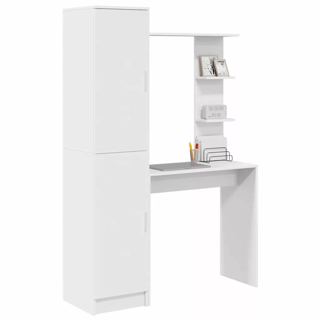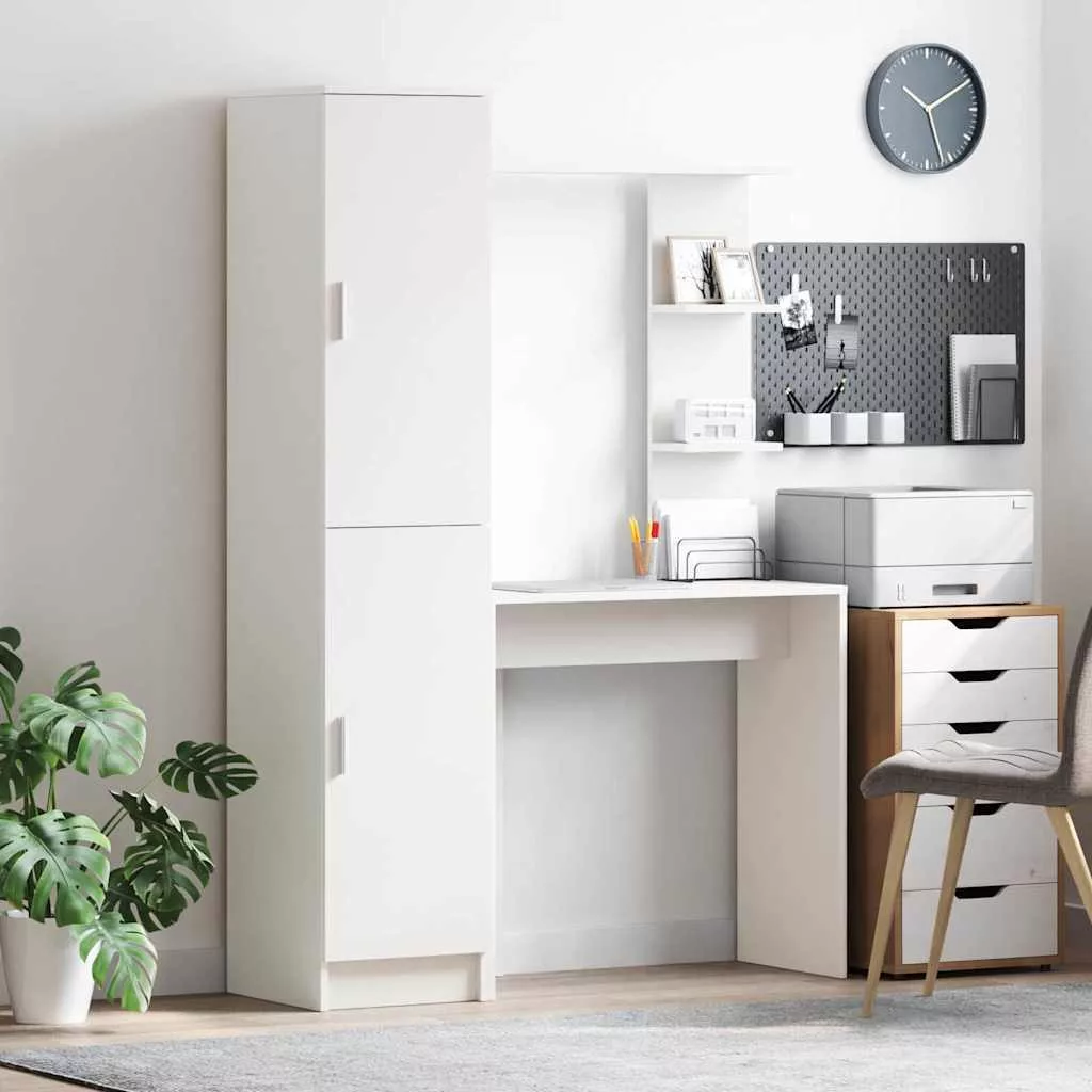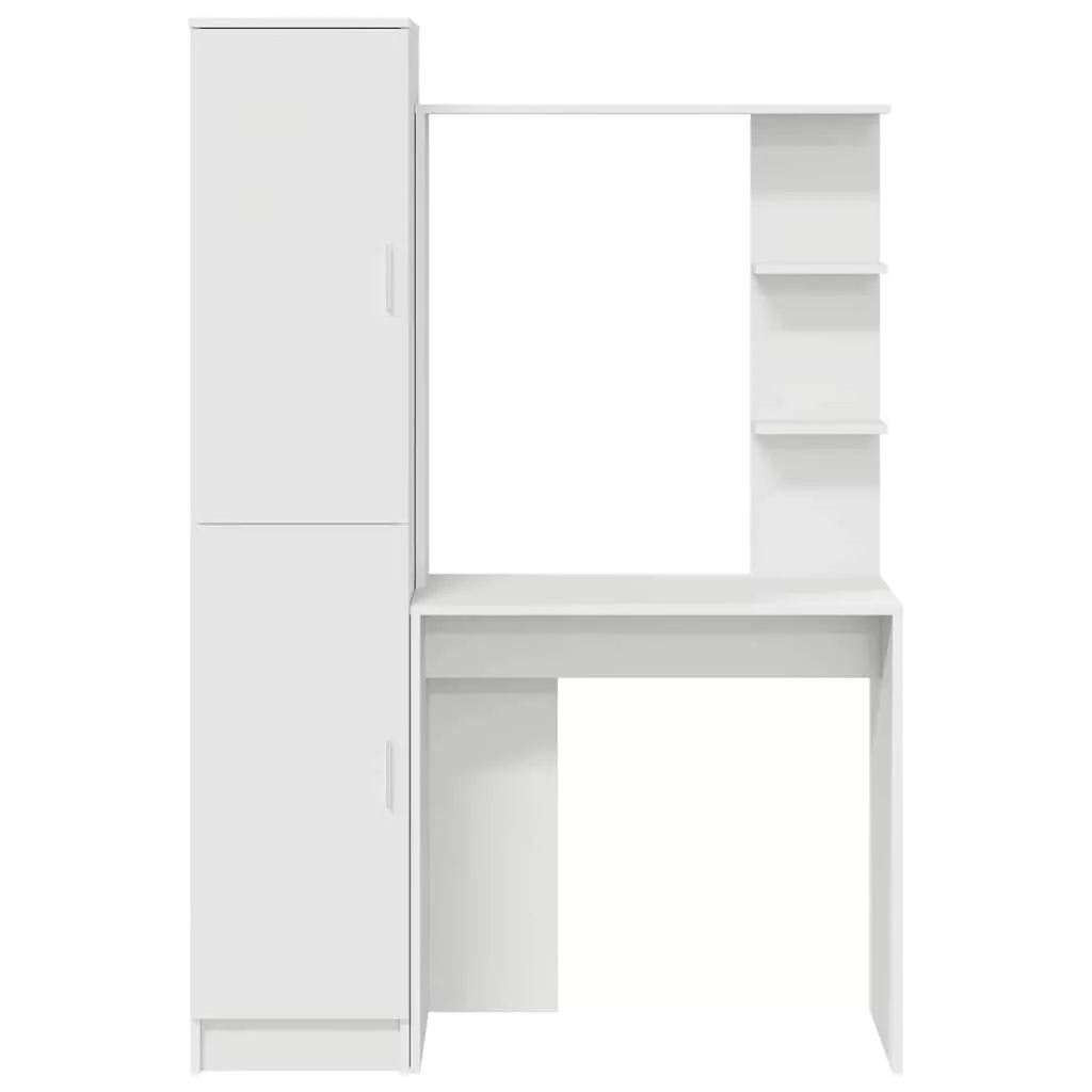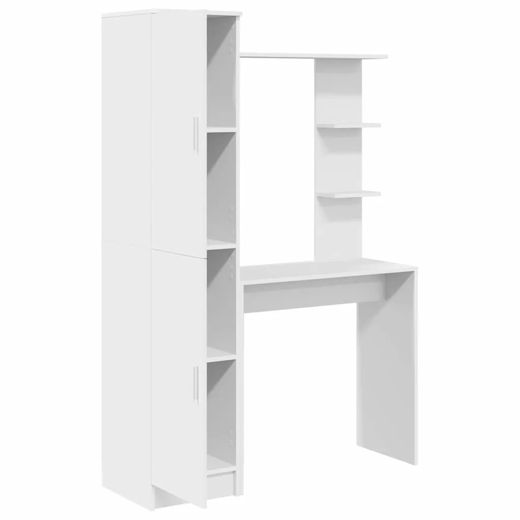 - Praktikus Tárolás: Deszkás polcokkal van felszerelve, az íróasztal bőséges helyet ad könyveknek és egyéb tárgyaknak, kényelmes használatot biztosítva. A zsanéros ajtók védik a dolgaidat, és ha zárva vannak, rendezett megjelenést adnak.